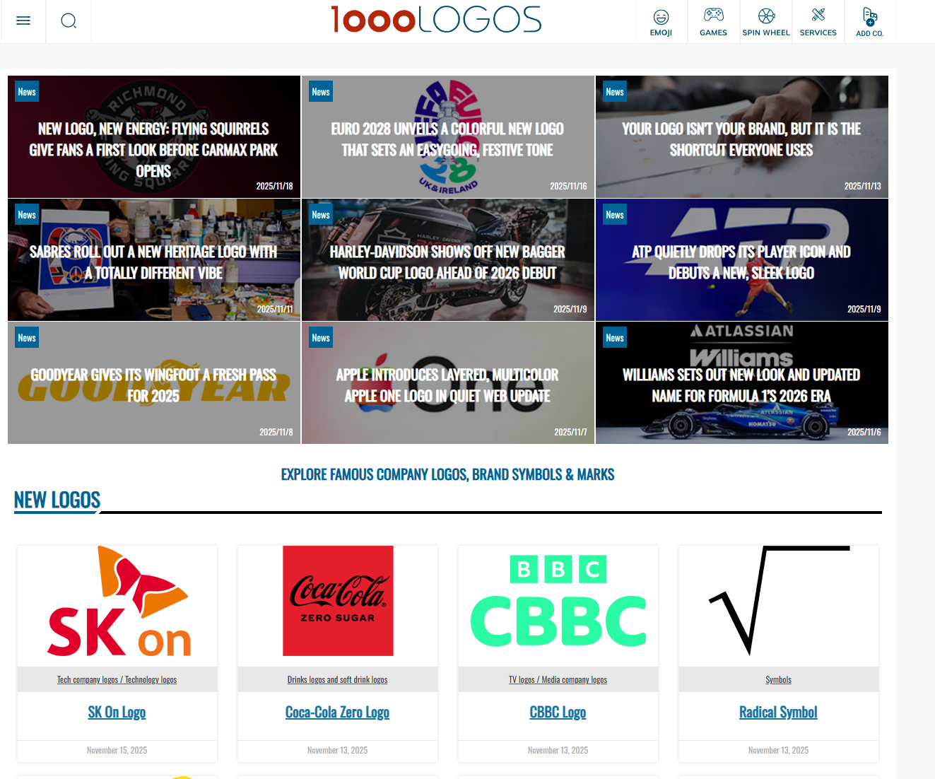 1000Logos.net is a massive database of logo histories, brand symbol explanations, and visual timelines of famous companies, sports teams, organizations, and products.
