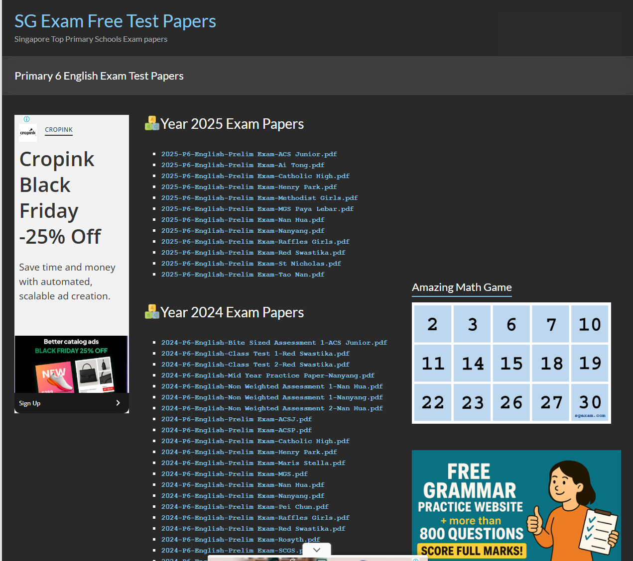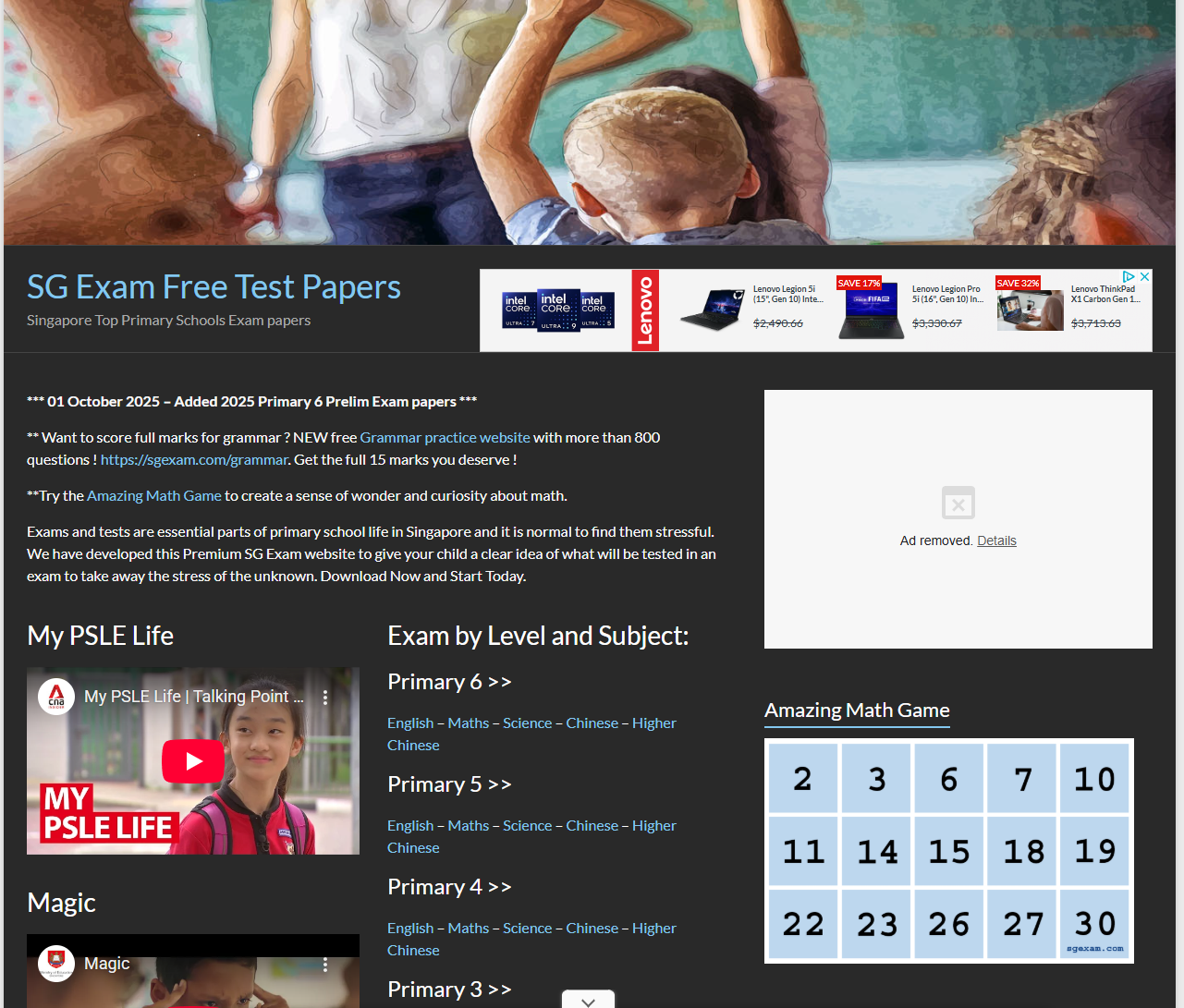 This site targets Singapore parents and students looking for free Primary School exam papers, mock tests, and prep material for top schools. It’s niche, local, and solves a very specific high-intent problem: helping kids perform better in exams.