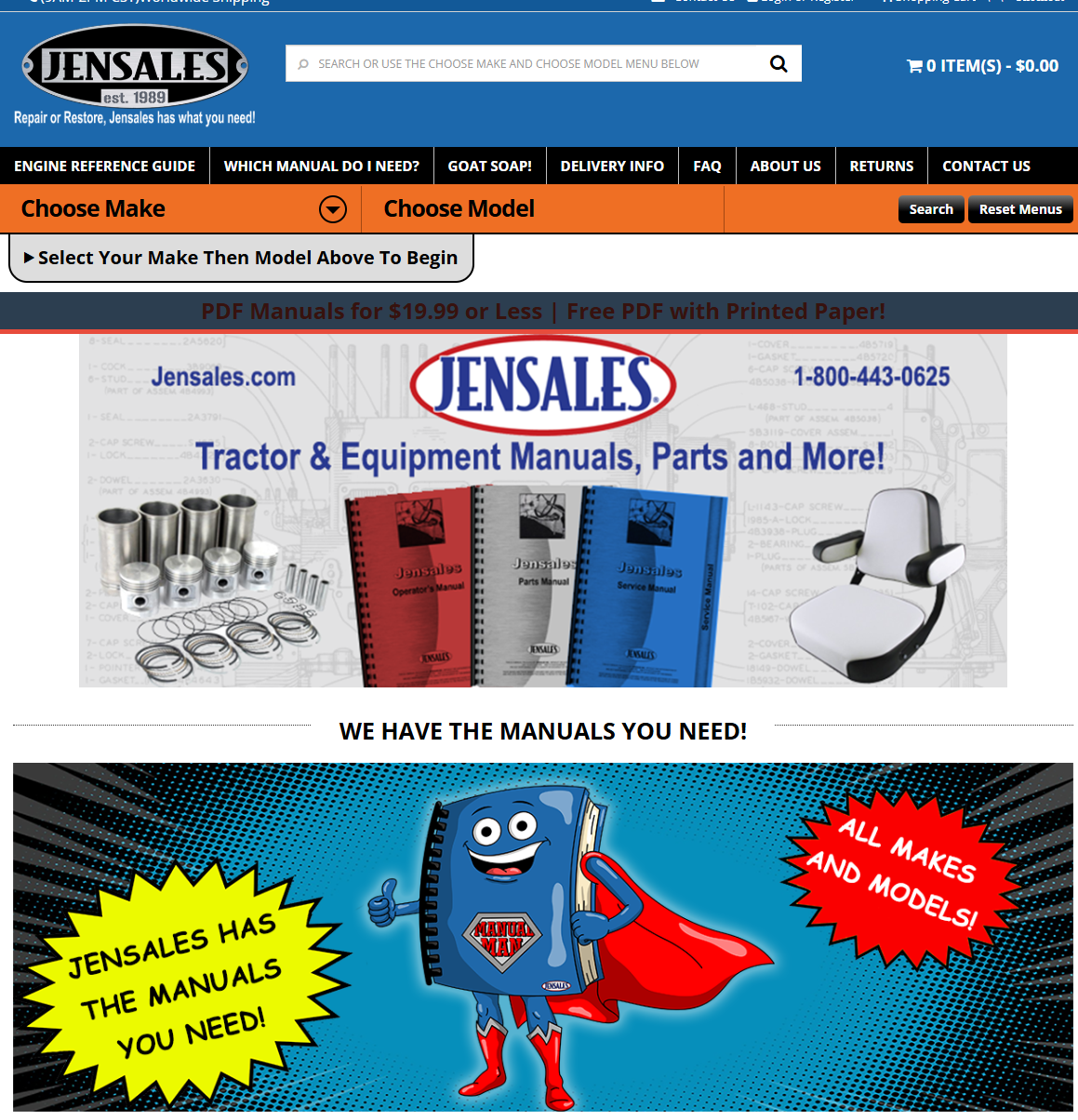 - Sells 16,000+ tractor manuals (service, operator, and parts manuals)